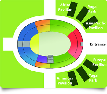 The World Culture Festival will showcase the cultural heritage of the four continents in four pavilions by giving the participants the opportunity to experiences each continent's local food, dance, music, poetry and literature. There will be inter-cultural dialogues, conferences and workshops in each continent.