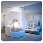 Centrally located and comfortably accessible on Berlin's exhilarating Potsdamer Platz, The Mandala Hotel is about purist luxury and elegant style.The hotel's studios and suites (starting at 40 m2) are renowned for their sleek design, homely feel and comfort. For those who like to sleep with their window open, rooms with views to the green inner courtyard with private balcony are available at just € 10 surcharge. The Mandala prides itself for being a partner of Amnesty International with the Human Rights being displayed in all the rooms.